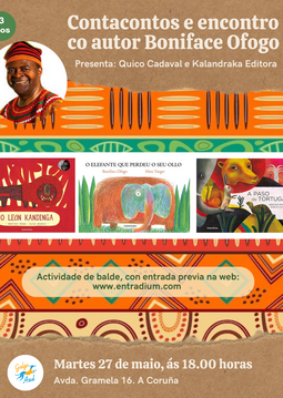 Contacontos e presentació co autor dos libros "O León Kandinga", "O elefante que perdeu seu ollo" e "A paso de tortuga", entre outros, no Galgo Azul.